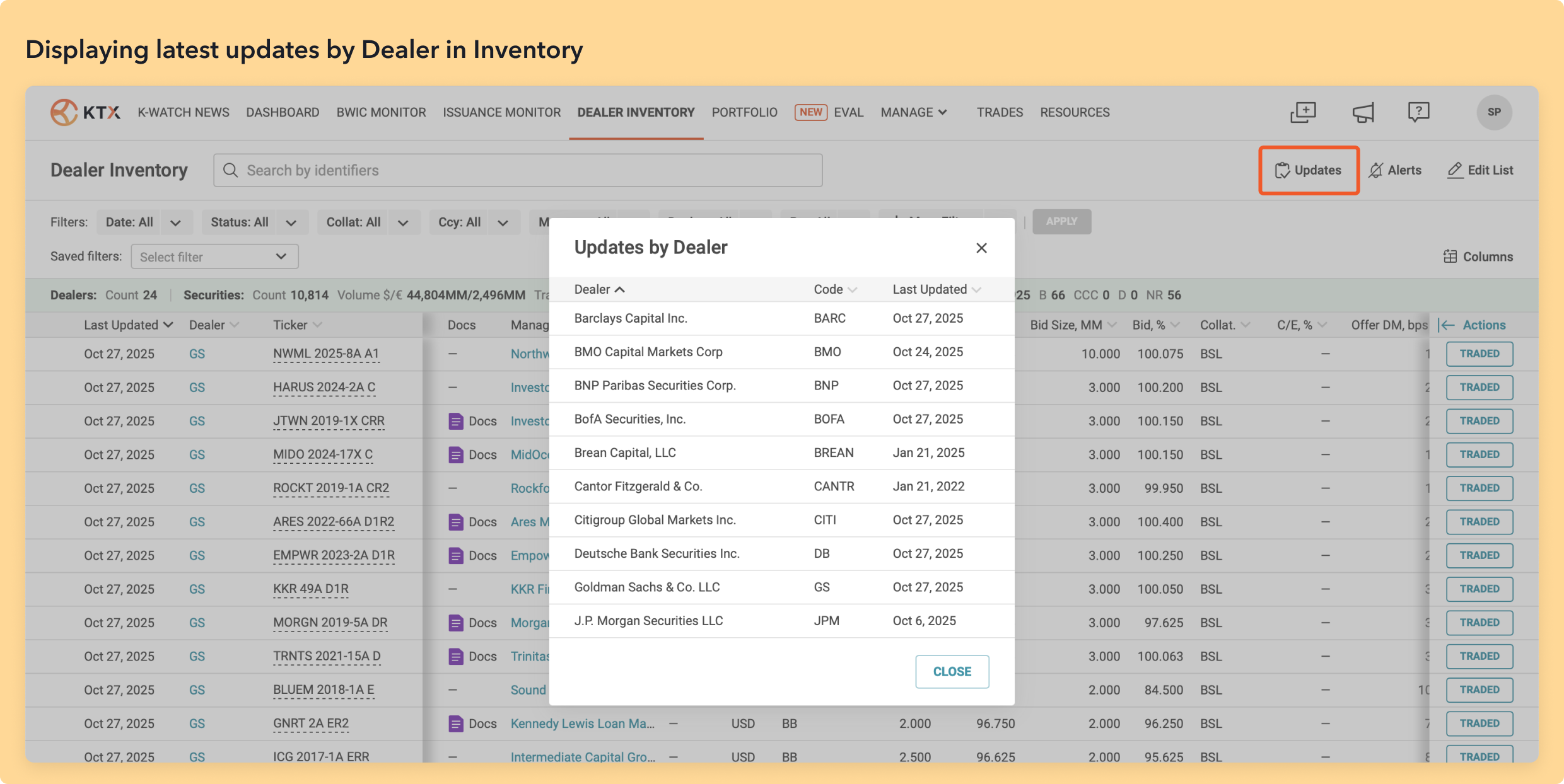 New columns on Portfolio, BWIC Monitor, and Dealer Inventory